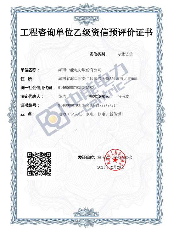 工程咨詢單位乙級資信預(yù)評價(jià)證書